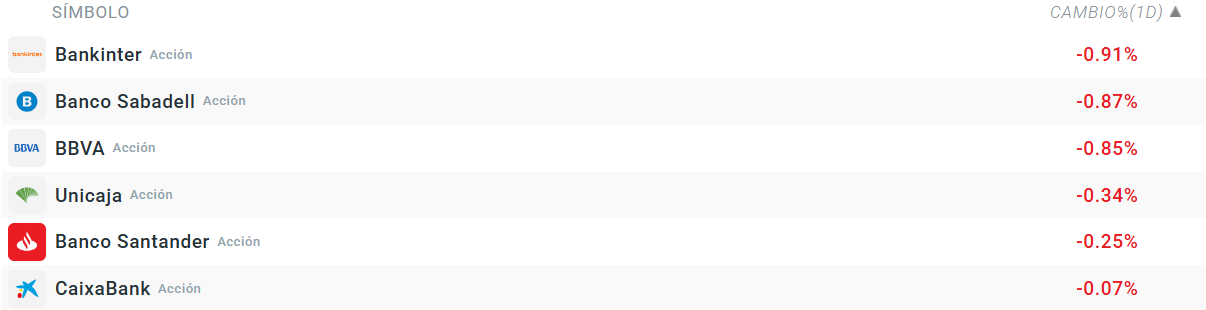 Sin embargo, a nivel nacional nos interesa la banca española. Las acciones de Bankinter son las que más caen hoy, seguidas por las acciones de Sabadell. En cualquier caso, no vemos un gran castigo. Estas caídas son consecuencia de la crisis en Francia, ya que esto también perjudica a toda la Zona Euro por el impacto que puede tener una Francia débil en el euro. De hecho, los rendimientos de la deuda española también están repuntando en la jornada de hoy.