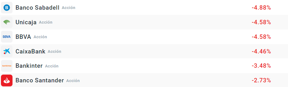La banca española cae con fuerza en la sesión de hoy y arrastra al selectivo español al completo. Son varios los motivos que parecen influir en la caída y los inversores están tomando beneficios ante los varios frentes que tienen abiertos.