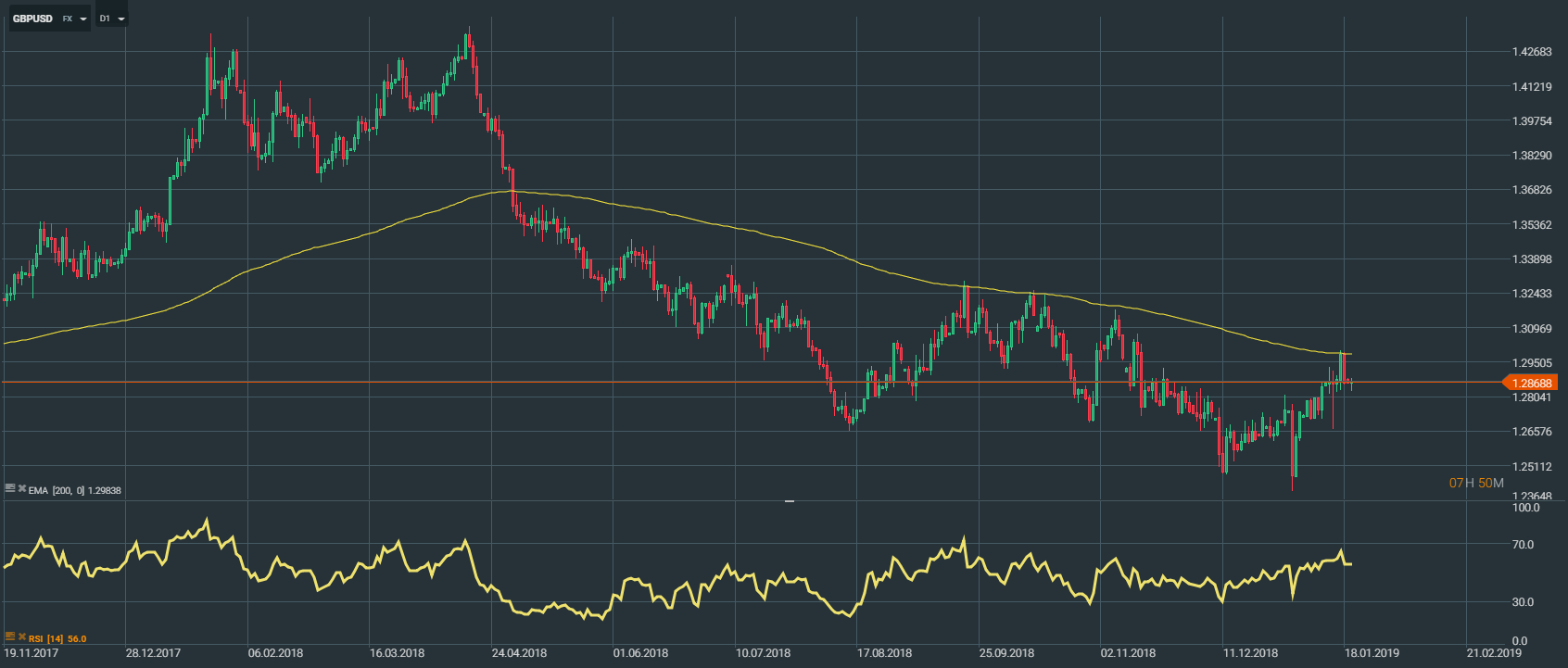 La Primera Ministra Theresa May presentará los próximos pasos en el proceso de Brexit hoy a las 3:30 pm GMT en el Parlamento del Reino Unido. La necesidad de desarrollar un "Plan B" fue el resultado de la tremenda derrota que sufrió el pasado martes. Aunque se desconoce lo que presentará Theresa May, las probabilidades sugieren que es probable que cualquier tipo de solución sea descartada durante la votación parlamentaria del 29 de enero. El GBPUSD cotiza sin cambios antes de la presentación.