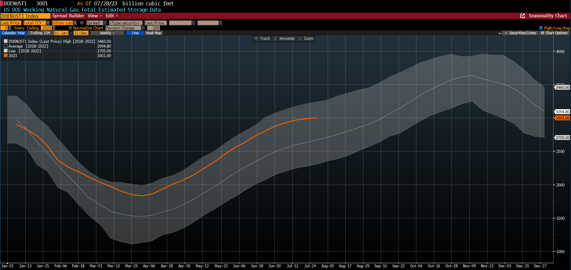 Durante la sesión de hoy, las cotizaciones de los contratos basados en NATGAS estadounidenses están subiendo casi un 5% en respuesta a los pronósticos meteorológicos entrantes en los EE. UU., lo que indica el regreso de la ola de calor en el país. Esto podría resultar en un aumento en la demanda de energía eléctrica utilizada para el aire acondicionado.