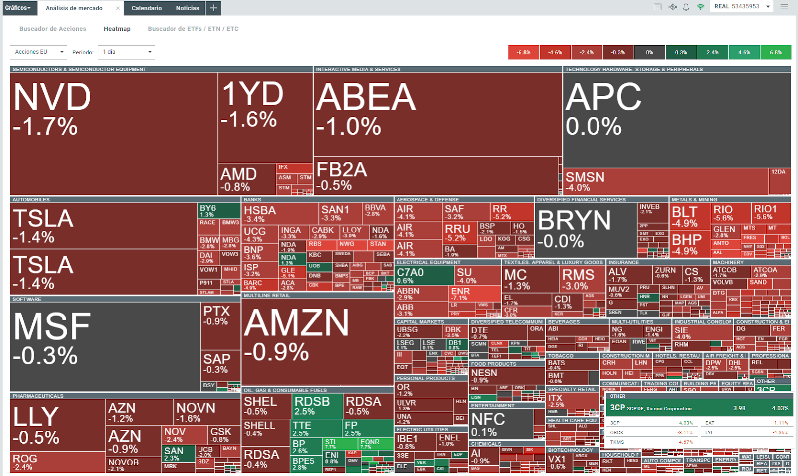 Europa se tiñe de rojo, pero Xiaomi destaca con una subida del 4%.