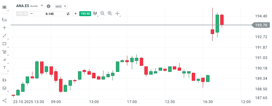 Las acciones de Acciona se disparan hoy más de un 2% debido a factores sectoriales positivos y algunos movimientos recientes en la estructura y estrategia corporativa. La compañía se está beneficiando del fuerte rendimiento de las renovables y del optimismo generalizado en el sector de energía tras la presentación de resultados de Iberdrola, todo ello en un contexto de revalorización de la renta variable española, donde el Ibex 35 se encuentra en máximos históricos. El mercado está premiando la consolidación del control de Acciona sobre su filial Acciona Energía, que ha superado el 90% de participación, reforzando la confianza en la estrategia del grupo y en sus proyectos innovadores en almacenamiento con baterías e hibridación tecnológica. Las últimas sesiones muestran presión compradora y superación de resistencias técnicas, extendiéndose en el movimiento alcista de hoy.