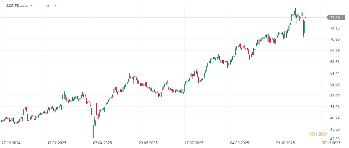 El viernes vimos una gran negatividad en el mercado en general, pero esta se concentró especialmente en los valores relacionados con la IA. Por tanto, también arrastró a otras compañías que están apostando por negocios "satélites", como son las empresas de centros de datos. En este ámbito, ACS era una de las compañías que más prometía debido a su ya estrecha colaboración en el mercado americano y con algunas de las compañías del sector, como Meta. De hecho, ACS ha invertido alrededor del 25% del total de sus inversiones en los 9 primeros meses del 2025 en centros de datos, lo que pone en relevancia la importancia que tendrá esta línea de negocio en el futuro. Si vamos más allá, ACS reportó que a finales de septiembre de este año, el 35% de la cartera de proyectos de Turner, su filial americana, se concentra en infraestructura digital. Hablamos de una fuente de crecimiento importante, por lo que si el sector de la IA se pone malo, el segmento de centros de datos para ACS como mínimo se resfría.