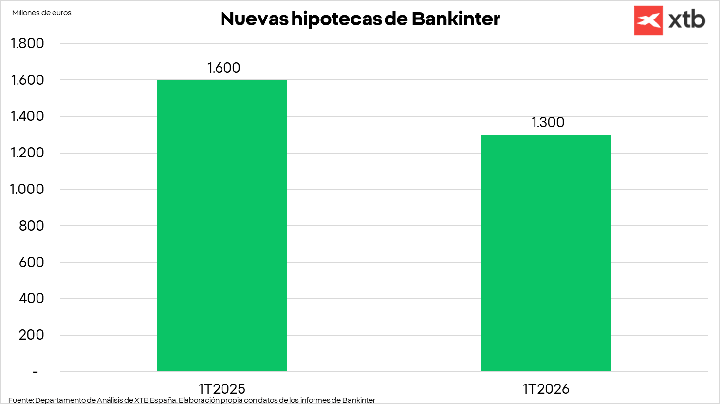 Lo único que nos preocupa del apartado de crédito es el negocio hipotecario. Aunque la cartera hipotecaria se ha incrementado en un 4% interanual, la nueva producción se ha desplomado un 22% interanual. Esto lo achacamos al despunte del euribor en el mes de marzo, que empuja a muchos clientes a esperar a que se acabe el conflicto de Oriente Medio para pedir su hipoteca. De hecho, en España la caída ha sido del 40% interanual. Pensamos que esta tendencia se ha propagado también en el mes de abril, por lo que el negocio en España puede sufrir considerablemente mientras el conflicto perdure.