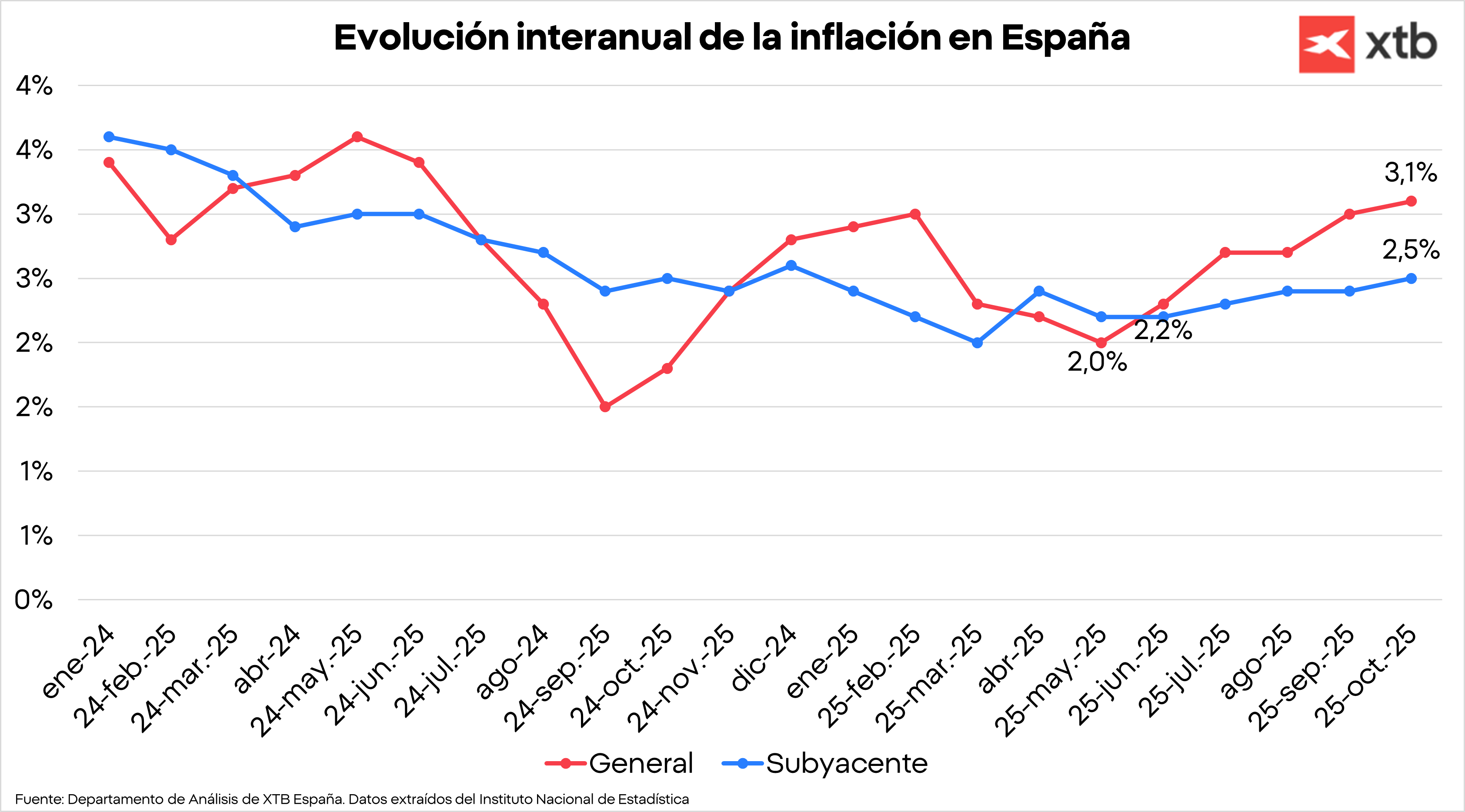 Uno de los puntos que nos preocupa para la economía española es el reciente repunte de la inflación. Si bien se había conseguido ubicar en el 2% o muy cerca en el caso de la subyacente, desde mayo y junio vivimos un repunte fuerte que ha vuelto a ubicar a la inflación general en el 3,1%. De hecho, parte de estas subidas se deben al incremento de precios de los alimentos, lo que puede provocar que el consumo en nuestro país se resienta por una menor renta disponible de los consumidores. Esto causaría una caída de la demanda de crédito, lo que también impactaría a la banca. De hecho, en el tercer trimestre de este año la banca del Ibex 35 con negocio puramente en España vio una caída del 0,4% intertrimestral de su cartera crediticia, lo que podría indicar cierto agotamiento del consumidor.