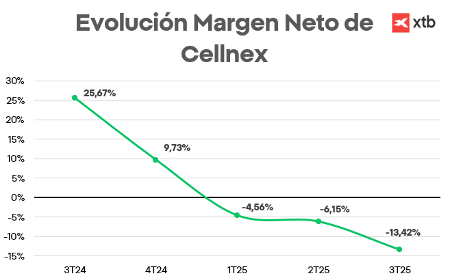 La compañía ha presentado varios trimestres con cifras que reflejan una salud financiera deteriorada. Para un negocio intensivo en CAPEX como el de Cellnex, esto es especialmente negativo.