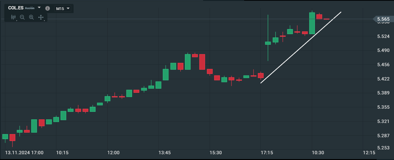 - Precio de las acciones de Colonial (Velas de 15 minutos)