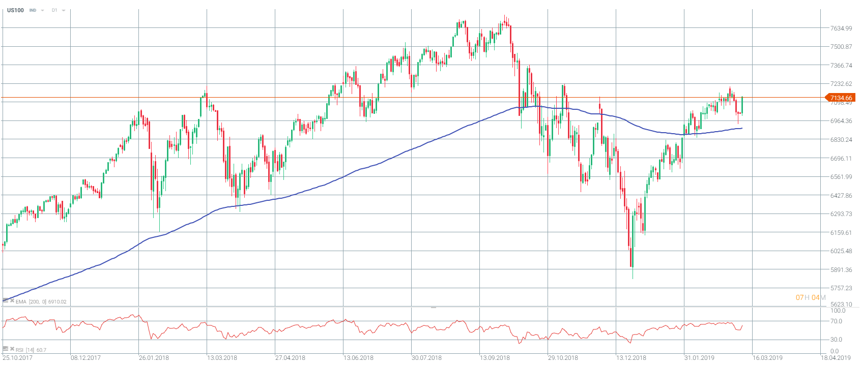 Los índices de EEUU suben este lunes a pesar de que Boeing fue una carga después de un accidente aéreo en Etiopía. No hay una razón clara detrás del movimiento, especialmente después de que los datos macroeconómicos han sido mixtos y parece puramente técnico después de la peor semana del año hasta ahora. US100 está liderando las ganancias al añadir un 1,7% a medida que las acciones tecnológicas suben y el índice está a sólo un 1% de los'19 máximos'.