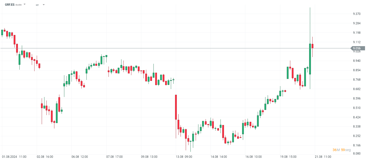 Subida del 5% para las acciones de Grifols después de que la noticia se haya hecho pública. Al parecer, ni Brookfield ni Grifols han hecho declaraciones sobre el asunto, pero después de las noticias negativas de los últimos días sobre las posibles dudas para llevar a cabo la OPA, esto ha supuesto un respaldo importante para los inversores.
