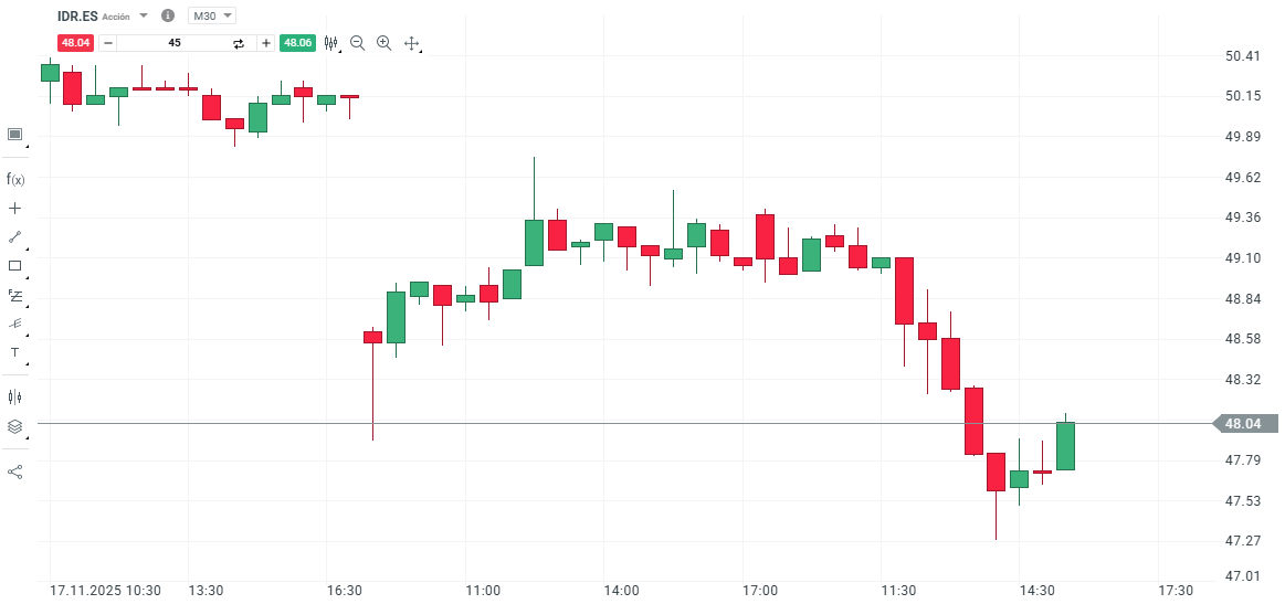 Dentro de la amplia oferta de instrumentos financieros de XTB, nuestros usuarios pueden encontrar acciones de Indra (IDR.ES) para invertir en la compañía. Al igual que ocurre con el resto de ETFs o acciones de nuestra cartera, los primeros 100.000 euros de negociación mensual no tienen comisión de compra ni de venta. Además, aquellos que quieran invertir en varios tipos de activos a la vez pueden hacerlo a través de nuestros planes de inversión, una funcionalidad que permite combinar distintos títulos, programando las aportaciones de manera periódica y eligiendo tanto el importe como el plazo o método de pago. En concreto, nuestros usuarios pueden crear su plan de inversión a partir de tan sólo 15 euros, pudiendo elegir hasta 9 ETFs diferentes en cada uno de sus planes.