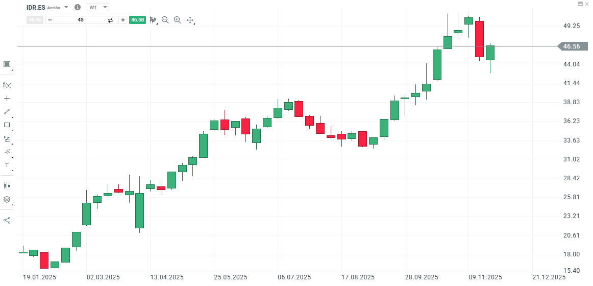 Con motivo de este último acuerdo alcanzado por Indra, sus acciones repuntan un 2,1%. El incremento acumulado durante el 2025 alcanza el 164%.
