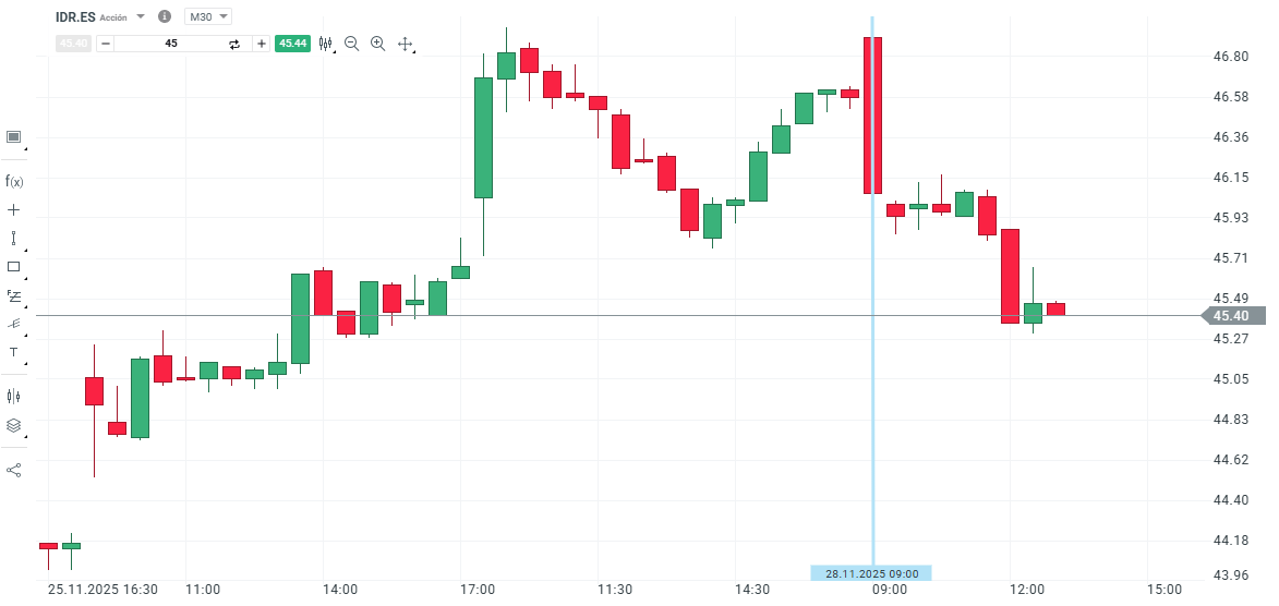 Dentro de la amplia oferta de instrumentos financieros de XTB, nuestros usuarios pueden encontrar acciones de Indra (IDR.ES) para invertir en la compañía. Al igual que ocurre con el resto de ETFs o acciones de nuestra cartera, los primeros 100.000 euros de negociación mensual no tienen comisión de compra ni de venta. Además, aquellos que quieran invertir en varios tipos de activos a la vez pueden hacerlo a través de nuestros planes de inversión, una funcionalidad que permite combinar distintos títulos, programando las aportaciones de manera periódica y eligiendo tanto el importe como el plazo o método de pago. En concreto, nuestros usuarios pueden crear su plan de inversión a partir de tan sólo 15 euros, pudiendo elegir hasta 9 ETFs diferentes en cada uno de sus planes.