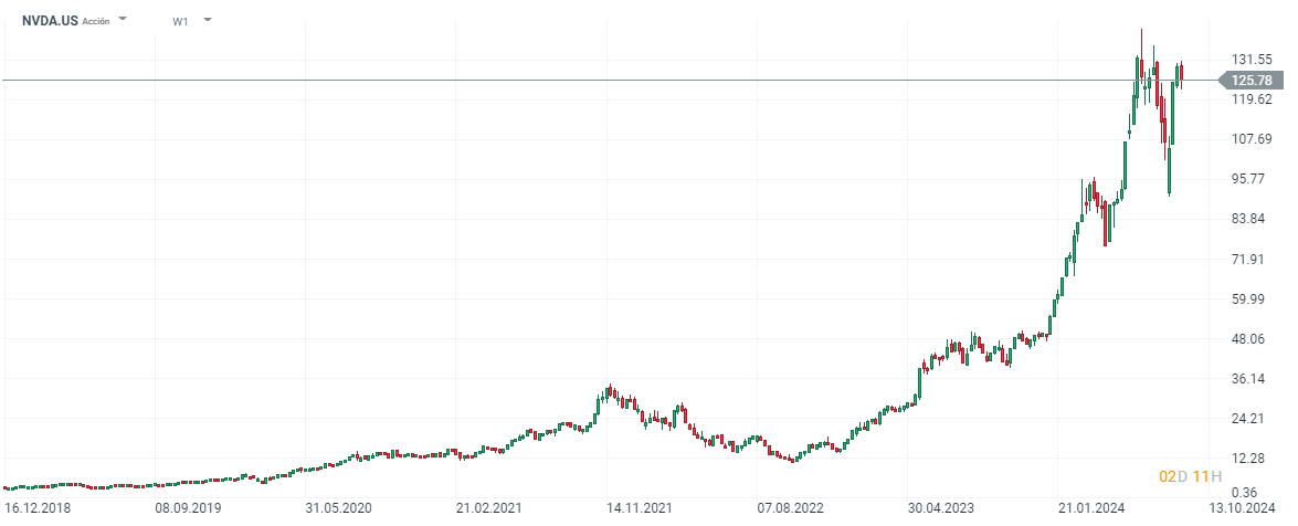Los años de subidas exponenciales de las acciones de Nvidia.
