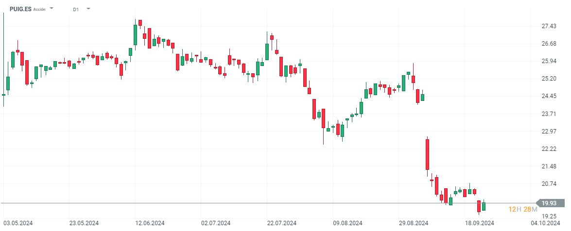 Las acciones de Puig acumulan una caída del 18% desde que salió a bolsa, pero la caída profunda vino tras presentar sus resultados financieros del segundo trimestre del año.