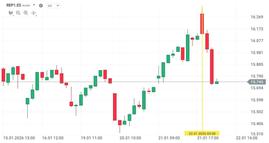 Las acciones de Repsol caen un 2,7% tras esta noticia, mientras que en lo que llevamos de año la corrección se reduce al 1,2%.