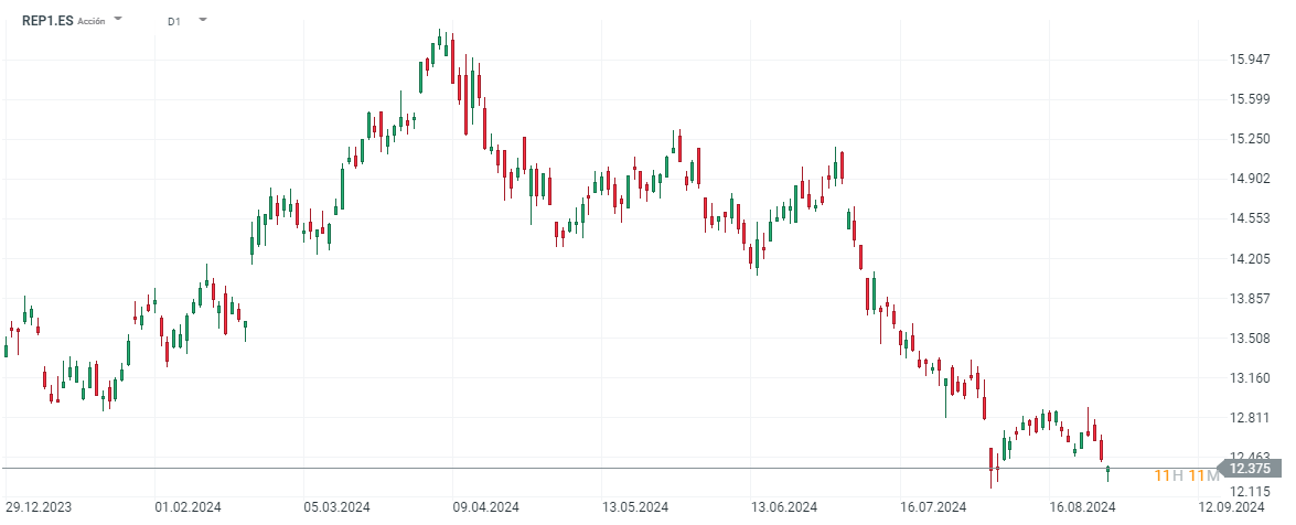 Las acciones de Repsol caen casi un 9% en lo que va de año.