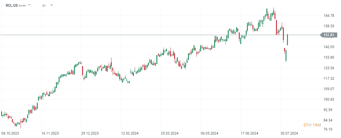 Royal Caribbean (RCL.US) es desde nuestro punto de vista la mejor empresa del sector cruceros y el mercado lo está reconociendo. Las acciones de la compañía suben hoy en bolsa más de un 8% y no solo se debe al rebote tras las caídas de ayer. ¿Qué ocurre con las acciones de Royal Caribbean?