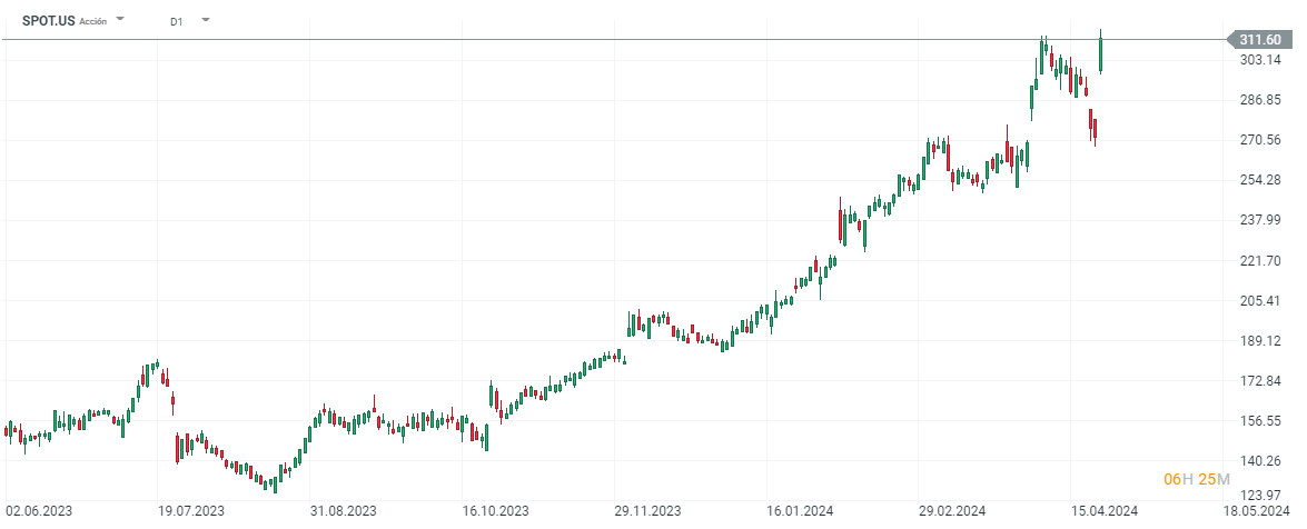 Las acciones de Spotify (SPOT.US) se disparan en bolsa tras presentar unos muy buenos resultados del primer trimestre del año 2024. Sin embargo, además de unas buenas cifras la subida esconde una importante declaración de la directiva.