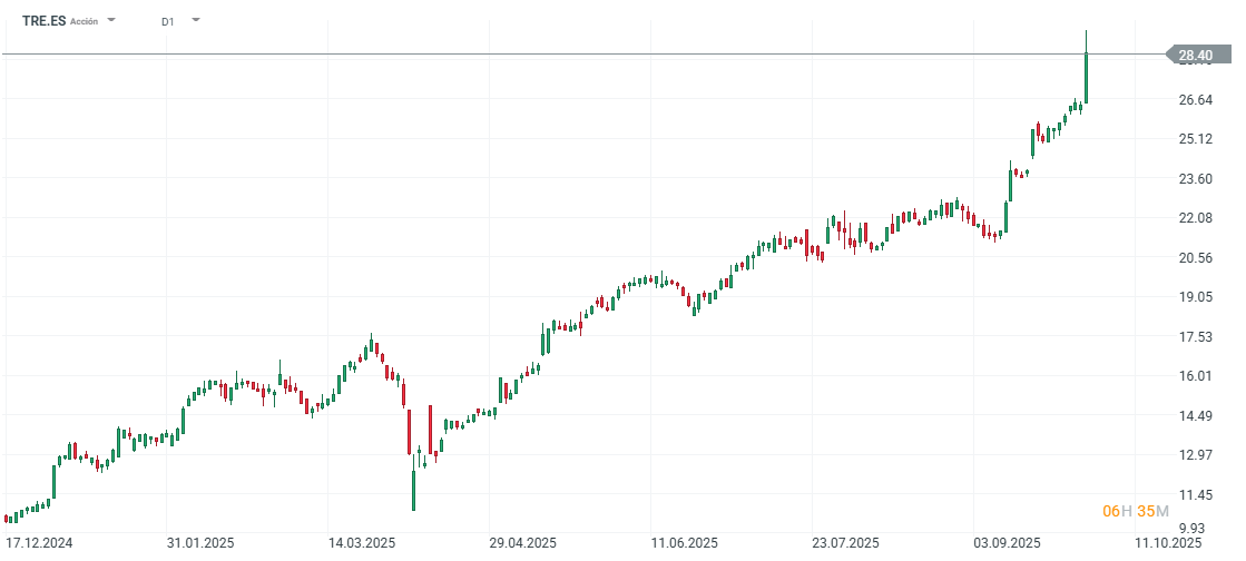 Las acciones de Técnicas Reunidas (TRE.ES) suben un 8% tras la noticia de que ha confirmado que cancelará en breve todo el préstamo que la Sepi concedió en 2022. Esto se ha producido en el Investor Day y era algo totalmente inesperado por el mercado.