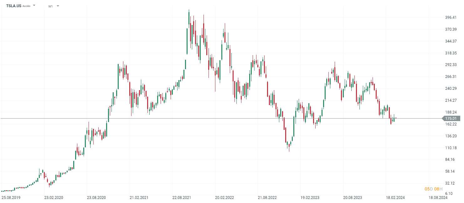 Tesla (TSLA.US) ha tenido un mal inicio del 2024, con un primer trimestre en el que sus acciones han caído cerca de un 30%. Lo peor es que el sentimiento sigue siendo malo y pese al anuncio de subidas de precios en sus modelos la acción no remonta lo perdido.