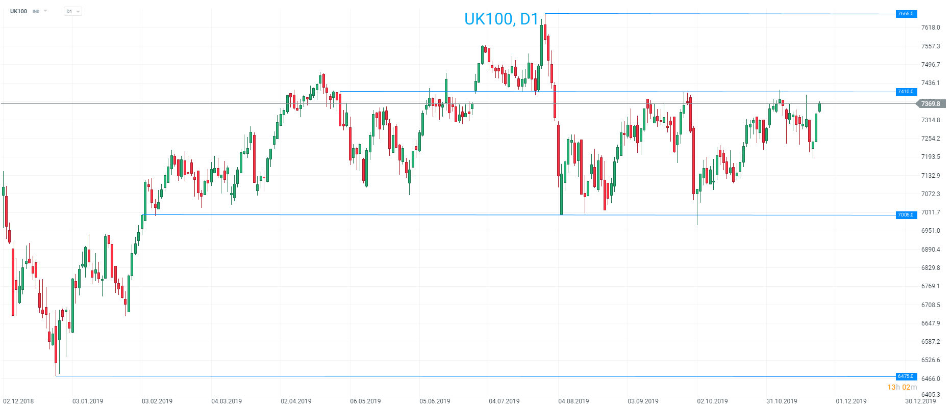 Las acciones del Reino Unido acumulan subidas por tercer día consecutivo, pero se mantienen en gran medida dentro del rango, con los 7410 como resistencia a corto plazo. Fuente: xStation