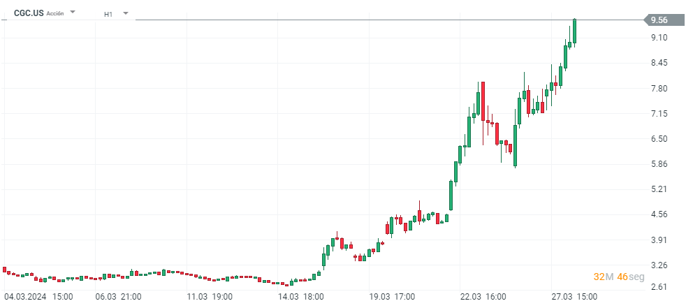 Las acciones de Canopy growth suben un 230% desde el pasado 15 de marzo, Aurora Cannabis un 70%, y Tilray un 55%.