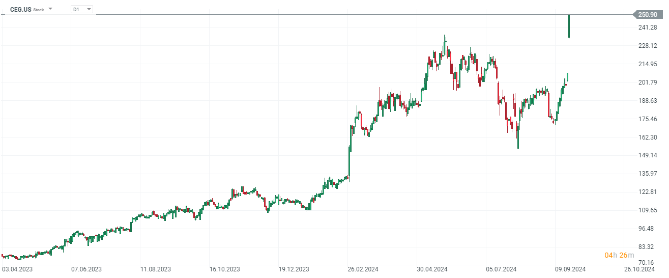 Las empresas que cotizan en Estados Unidos vinculadas al mercado del uranio (minería, procesamiento) están cotizando en un rango de entre el 4 y el 6 % hoy. El gigante energético estadounidense Constellation Energy anunció planes para reiniciar la Unidad 1 en la planta de energía nuclear de Three Mile Island para 2028 para garantizar un suministro de energía sostenible y predecible para los centros de datos de Microsoft (que alimentan la IA, entre otras cosas). Las acciones de Constellation Energy están subiendo a nuevos máximos históricos hoy, cotizando más del 20 %.