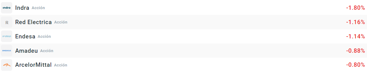 Las acciones de Indra caen con fuerza en medio de su proceso de reestructuración. La empresa venderá su filial de pagos y el año que viene será Minsait quien probablemente se ponga a la venta. A pesar de ello, Minsait sigue funcionando con normalidad y ayer anunció la compra de una compañía colombiana. Redeia y Endesa también se anotan caídas superiores al 1%.