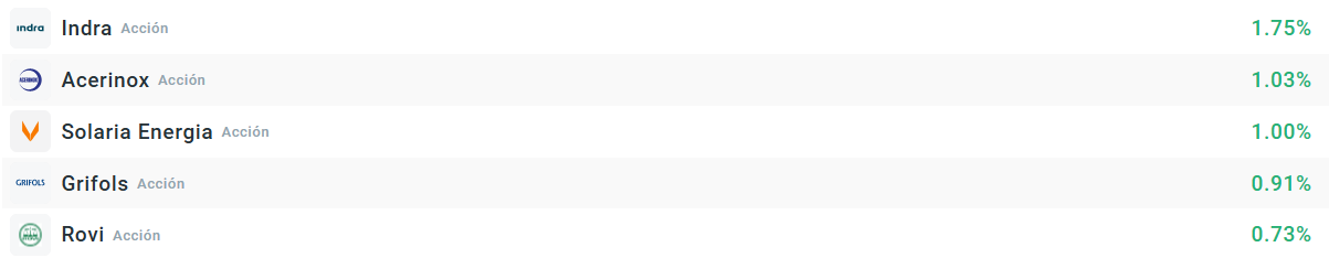 Las acciones de Indra lideran al Ibex35 con subidas superiores al 1,5%. Recordemos que el comienzo de año de Indra fue muy bueno, subiendo hasta un 53% hasta mitad de año, para después desinflarse cuando publicó unos resultados trimestrales con un menor crecimiento del esperado de su área de defensa. Las acciones de Acerinox y Rovi también han tenido un buen inicio de sesión.