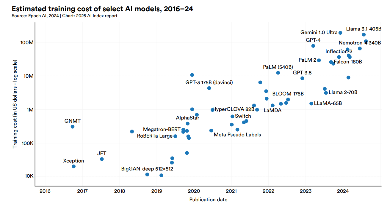 Sin embargo, el coste de entrenar los modelos suben, ya que las compañías están apostando por desarrollar el mejor modelo posible. Esto puede causar por un lado presión en los precios, mientras que por el otro puede causar (y ya está causando) un incremento de los costes de I+D. Es decir, los beneficios de estas empresas podría caer.