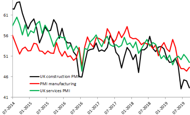 La mirada más reciente al sector de servicios ha planteado algunas preocupaciones sobre la salud de la industria con la lectura del PMI para septiembre cayendo por debajo de la marca de 50 y entra en territorio de contracción. Poco después de las lecturas débiles del sector de la fabricación y la construcción, estos datos lo convierten en un triple golpe de malas noticias para la economía del Reino Unido y apunta a una caída del PIB del 0.1% en el tercer trimestre. Si esto ocurriera, el Reino Unido entraría en una recesión técnica bajo la definición generalizada de dos trimestres consecutivos de crecimiento negativo, y eso es incluso antes de que estemos cerca de la fecha límite actual del 31 de octubre para abandonar la UE.