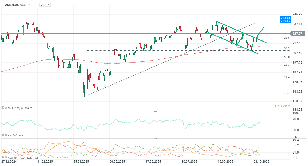 Las acciones de Amazon suben hoy un 0,29%, quedándose por detrás del mercado y el resto de competidores este año dado que únicamente acumula una subida del 3,36% desde princpios de año.