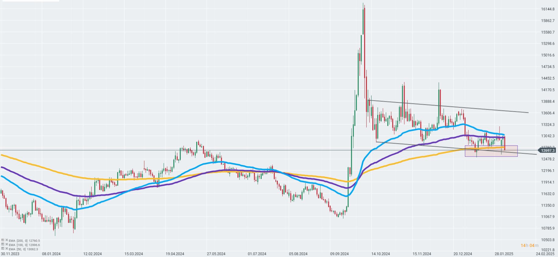 Actualmente, el índice chino está cayendo un 2,5% y está poniendo a prueba un importante punto de soporte establecido por la media móvil exponencial de 200 días, lo que podría ser un aspecto clave para la validez de la tendencia alcista general del instrumento a largo plazo. Las acciones de PDD Holding (PDD.US) están bajando casi un 6% hoy antes de la apertura del mercado. Fuente: xStation 5