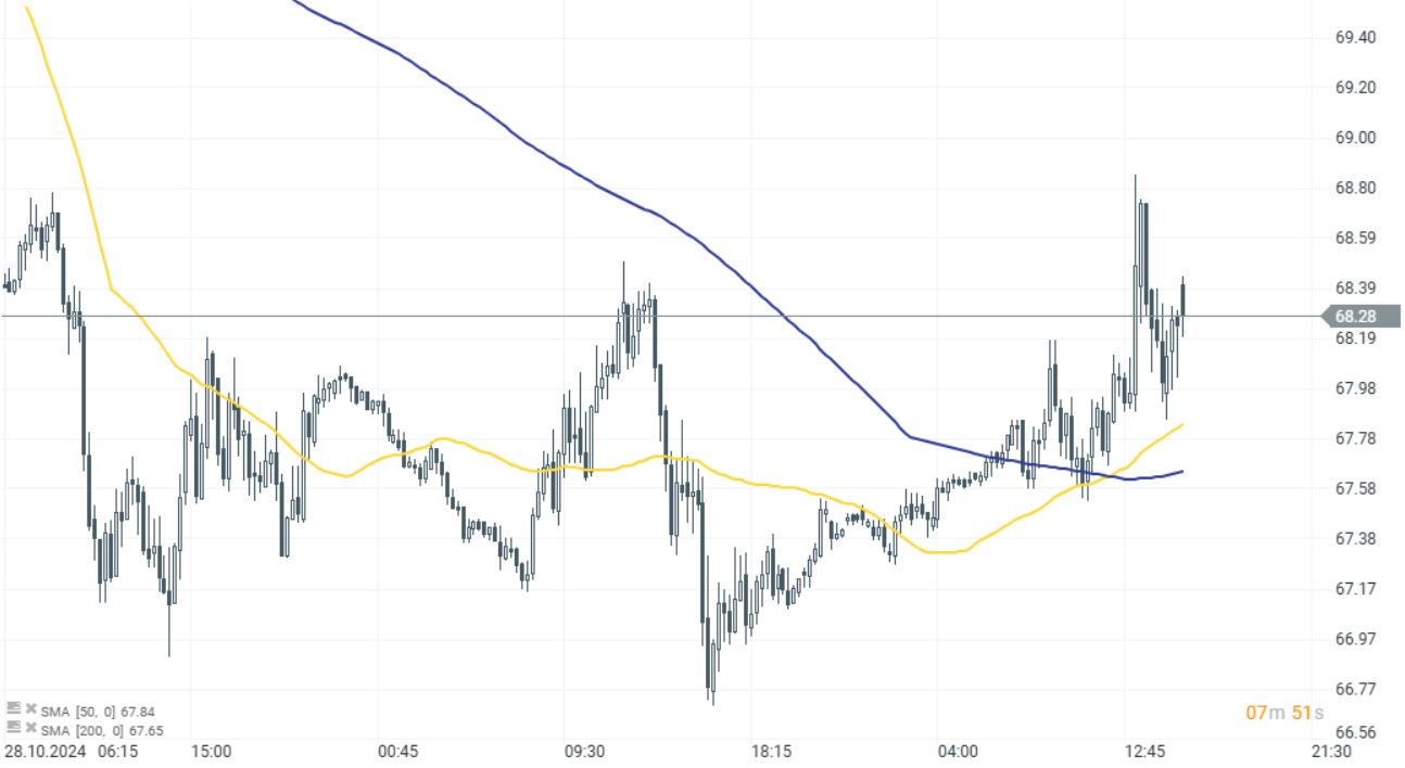 El petróleo avanza ligeramente tras la publicación. En el intervalo diario, el OIL.WTI avanza un 1,10% hasta los 68,28 dólares por barril.