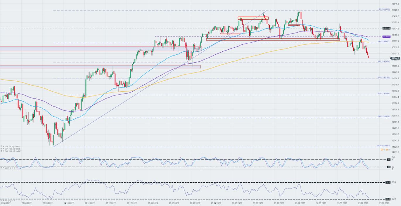 Los futuros basados en el DAX alemán cotizan casi un 0,72% abajo en el día y se negocian cerca de los mínimos locales de marzo de este año. Fuente: xStation 5