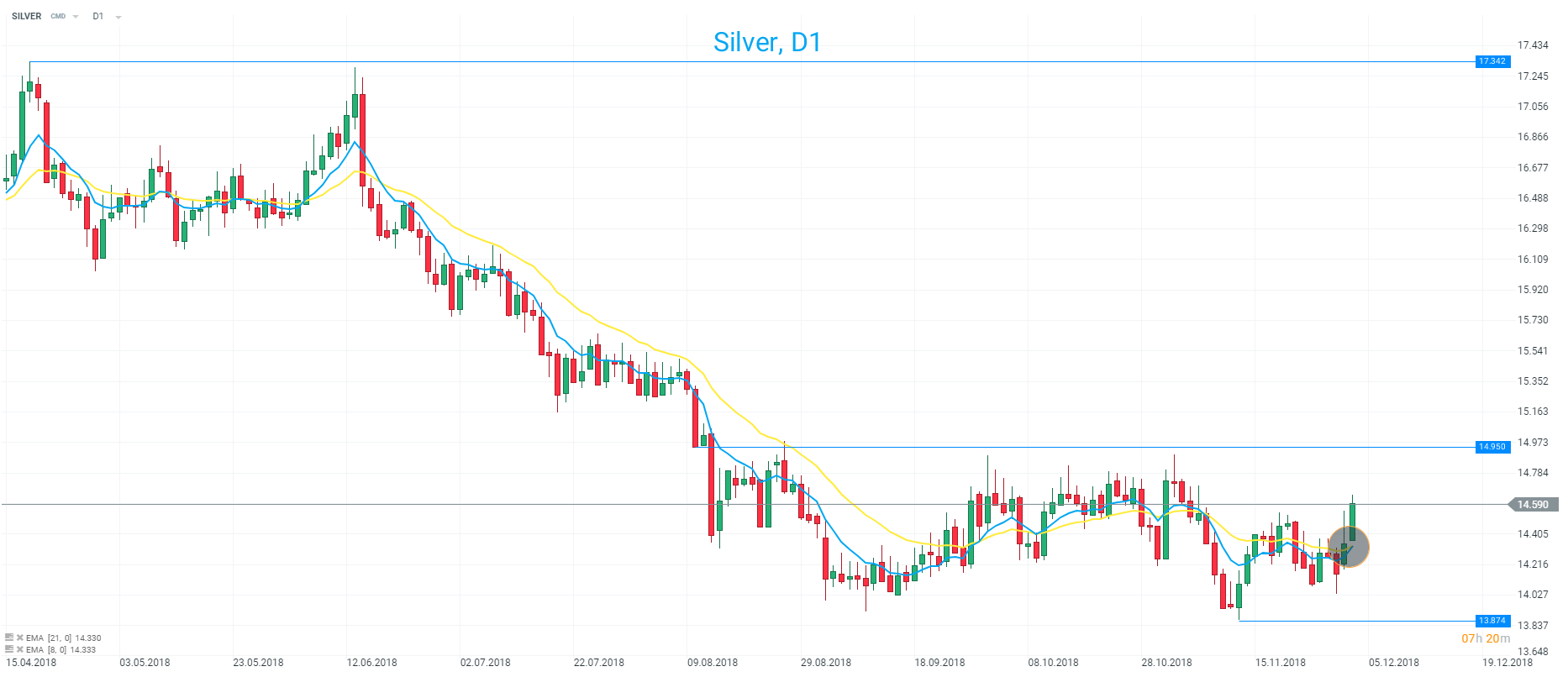 Es por ello que la mayoría de las divisas se encuentran en situación de fortaleza, y es por ello que se estima que la plata continuará en alza. El mercado está por encima del 1,5% a lo largo de la sesión de hoy, pero necesita romper por encima de 14,95 antes de que pueda producirse un repunte mayor. Fuente: xStation5
