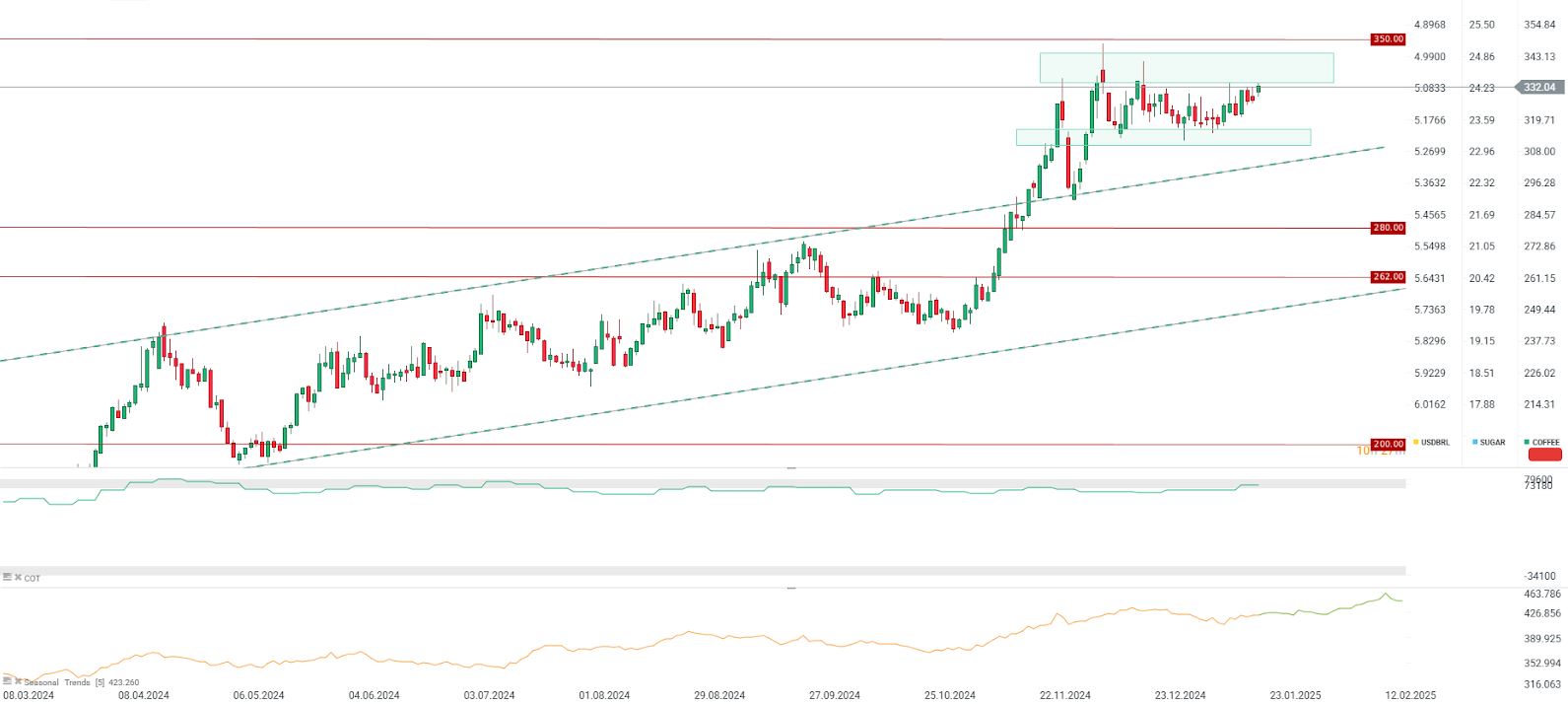 - Los precios del café están volviendo a máximos históricos y actualmente se negocian en el rango superior de consolidación que comenzó en la primera quincena de diciembre