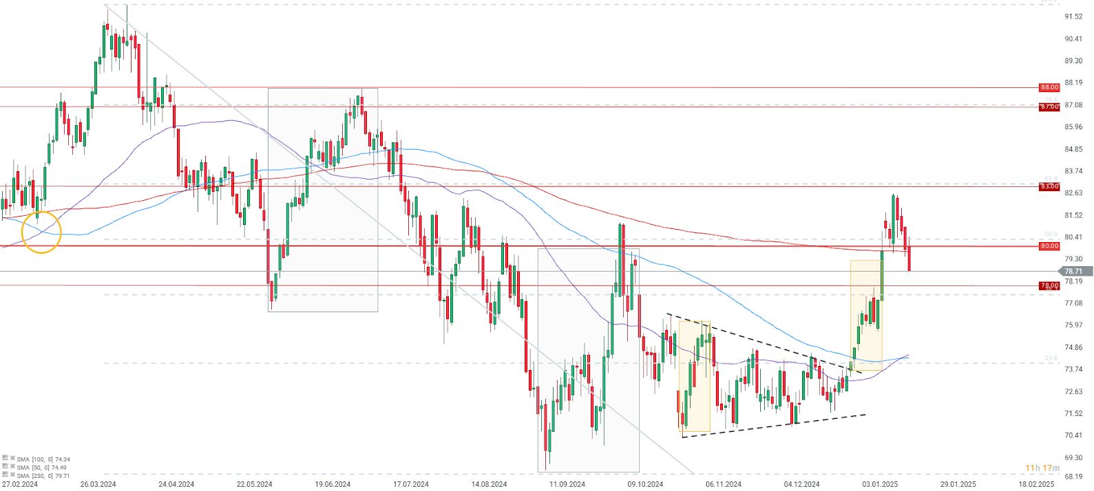 Los precios del petróleo han caído significativamente en los últimos días debido a la falta de perspectivas de nuevas restricciones de suministro. Sin embargo, si Trump comienza a amenazar a Rusia con sanciones, la situación podría revertirse rápidamente. Fuente: xStation5