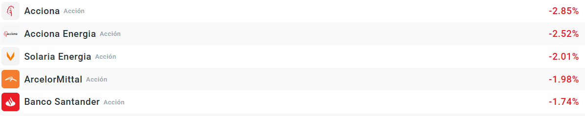 Las acciones de Acciona y Acciona Energía caen con fuerza y es que se podrían ver perjudicadas en su negocio de renovables en Estados Unidos por la disposición de Trump de primar los combustibles fósiles. ArcelorMittal y Santander también corrigen, aunque hay que decir que la mayoría de empresas están cotizando en negativo.