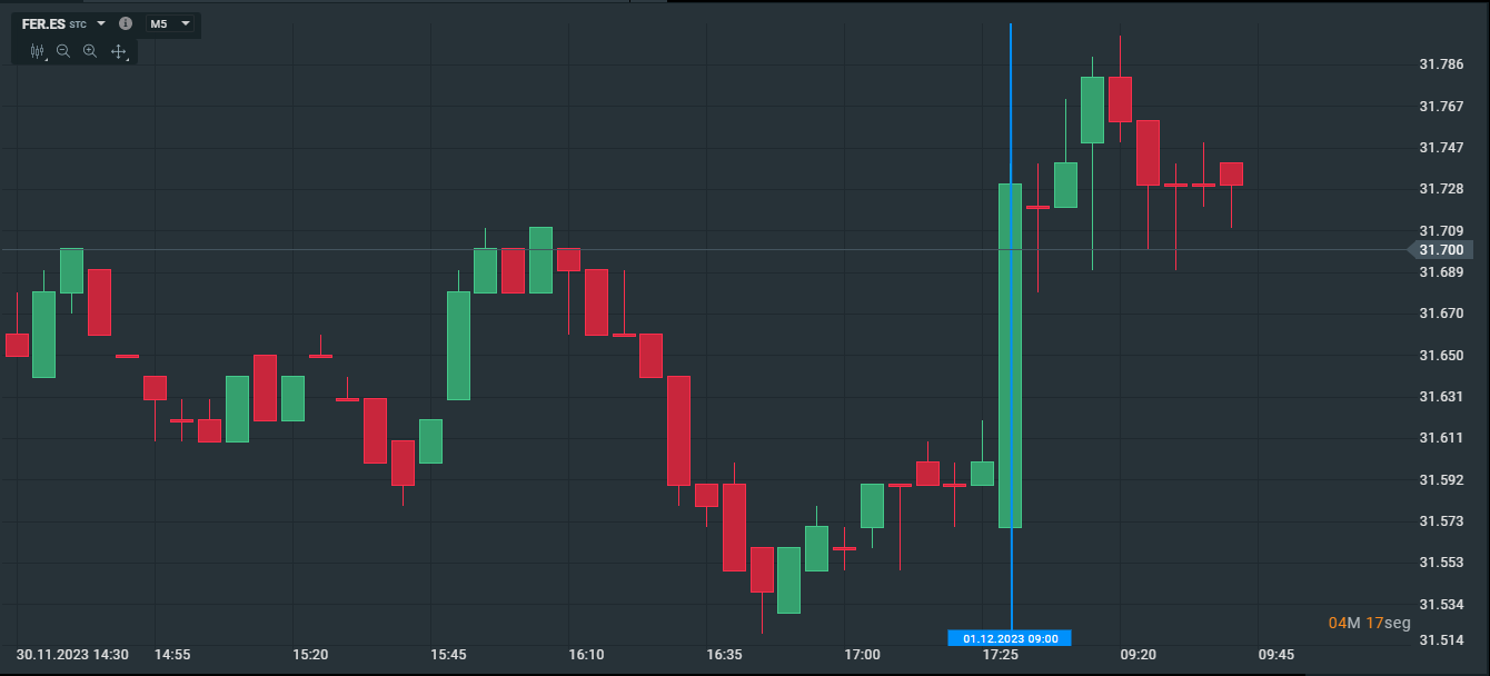 Gráfica de Ferrovial (Velas de 5 minutos)