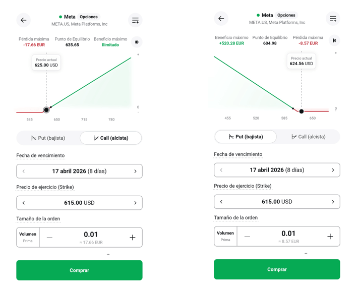 Además de poder invertir en Meta a través de sus acciones, recuerda que puedes invertir sobre esta Acción tanto al alza como a la baja, multiplicando tu poder de inversión y siempre con el riesgo limitado gracias a las Opciones. Descubre las Opciones de XTB y empieza a invertir desde 1€ y siempre con el riesgo limitado.