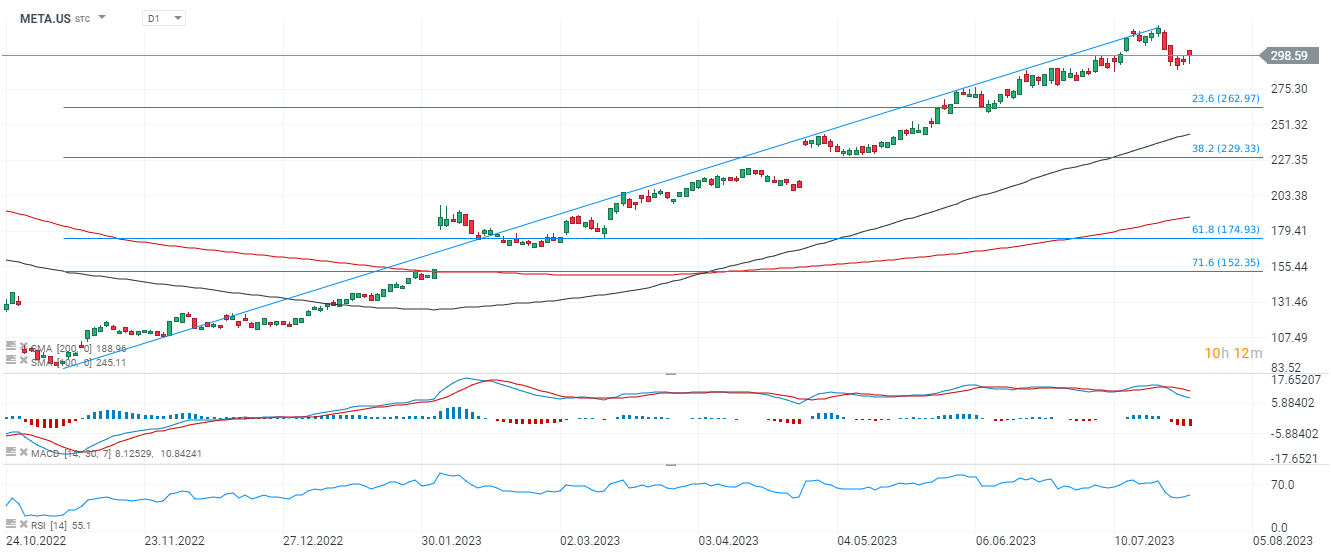 El gigante de las redes sociales Meta Platforms (META.US, anteriormente Facebook) informó ayer los resultados del segundo trimestre de 2023. El informe superó las expectativas de los analistas tanto en ingresos como en beneficio por acción, y las acciones ganaron casi un 10 % antes de la apertura de Wall Street. Los inversores recibieron con euforia los comentarios de la empresa sobre el desarrollo de la IA y la recuperación del sector publicitario. La compañía confirmó su posición de liderazgo en el mercado global, con un total de 3.880 millones de usuarios en sus aplicaciones (Facebook, WhatsApp, Instagram), número que creció un 6% interanual a pesar de la enorme escala. La empresa está planeando una gran cantidad de inversiones e incurriendo en costos que probablemente aumenten, pero el mercado ve esto como una señal de crecimiento dinámico. También tuvo una visión positiva de 'precaución' en términos de inversiones planificadas en 2023, para las cuales la compañía pretende gastar menos de lo que esperaba Wall Street (en respuesta a costos más altos, entre otras cosas). Mark Zuckerberg acompañó los resultados con un comentario muy positivo. Estos son los detalles del informe: