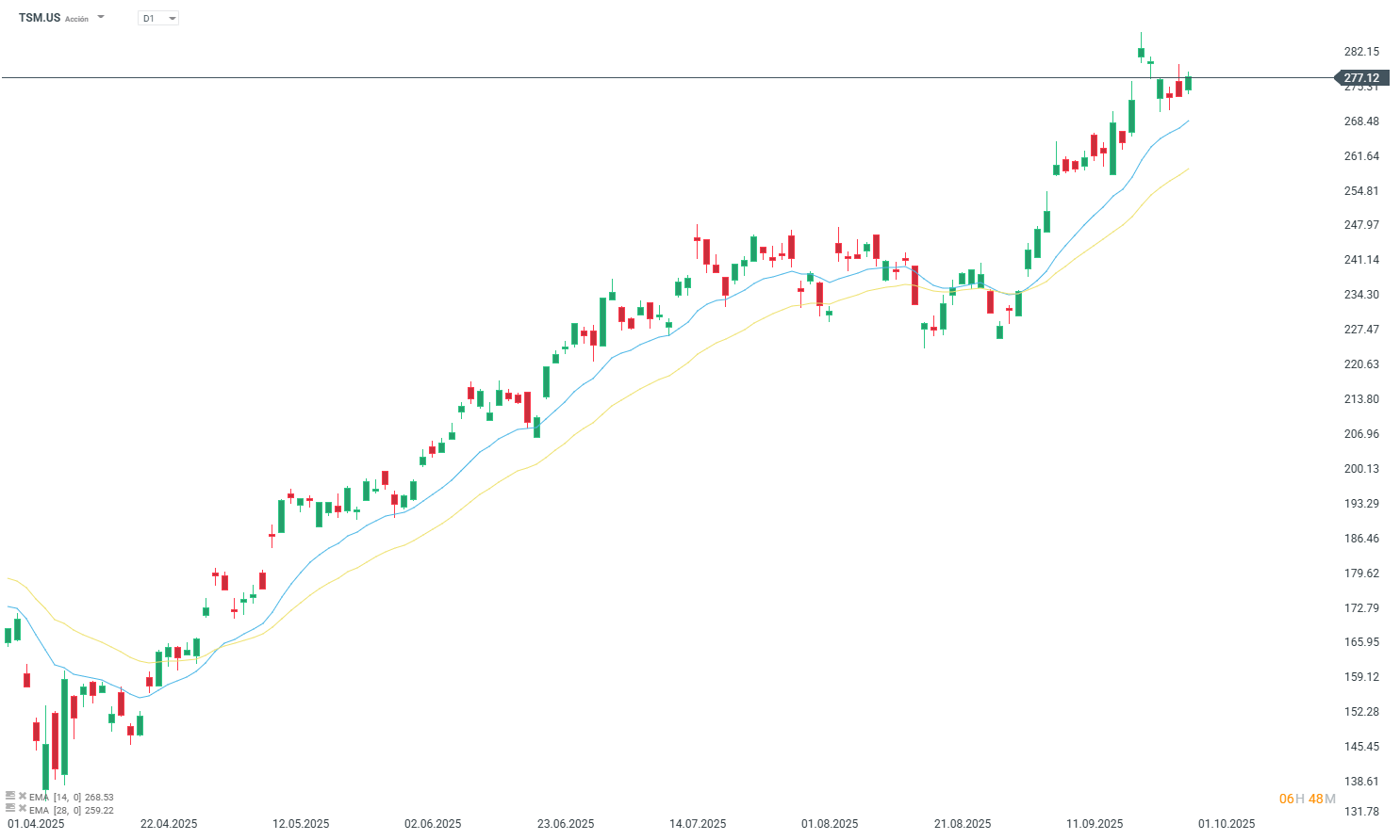 Las acciones de TSMC avanzan un 1,4% en la sesión de hoy y un 22,5% en el acumulado del año.