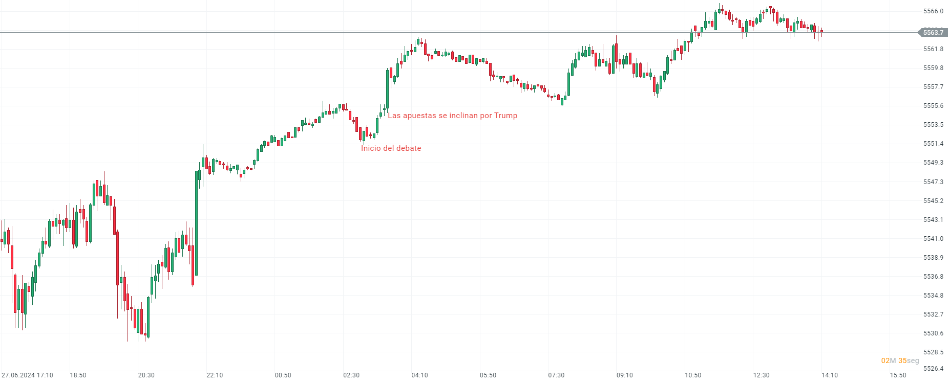 También se movieron los mercados, y en el caso del S&P500 hubo ligeras subidas en el selectivo según transcurrían los minutos.