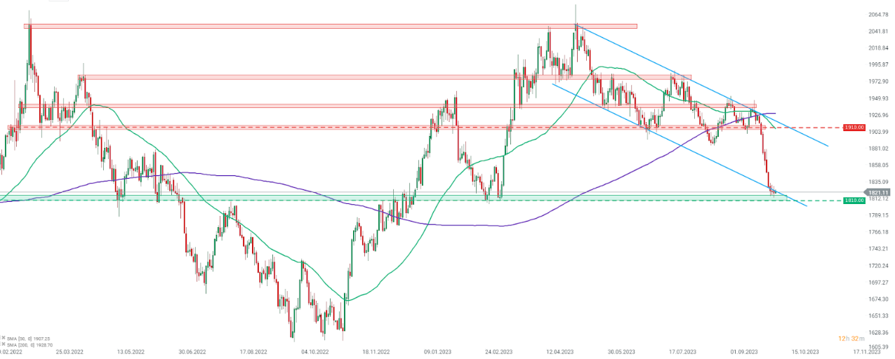El oro y otros metales preciosos han estado cotizando bajo presión recientemente a medida que los rendimientos de los bonos seguían subiendo. Si observamos el gráfico del oro en el intervalo D1, podemos ver que el precio se ha desplomado desde el límite superior del canal bajista hasta el límite inferior. Si bien se han detenido las caídas, aún no se ha iniciado ninguna medida de recuperación. Un informe sólido del NFP probablemente provocaría otro repunte en los rendimientos y podría significar más dolor para los alcistas del ORO con potencial para una ruptura decisiva por debajo del rango del canal.