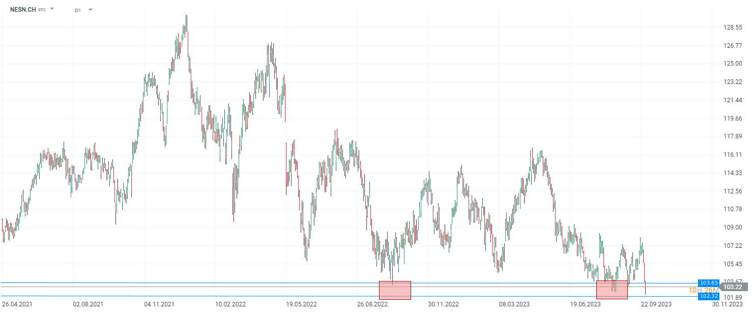 Evolución de Nestlé en los últimos meses, cotizando en niveles de soporte. Fuente: Xstation 5