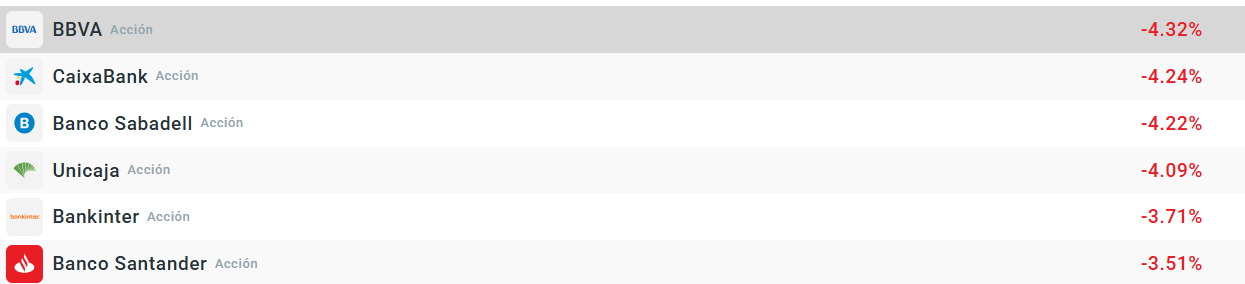 Las acciones de Sabadell, BBVA y el resto de bancos españoles se están desplomando más de un 4% en estos momentos de la sesión después de que Trump haya lanzado un anuncio amenazante sobre la Unión Europea. El anuncio también impacta al resto del mercado, pero los bancos son los que más sufren.