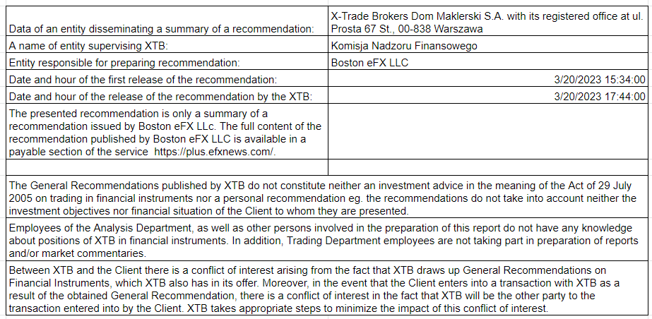 El banco recomienda tomar una posición corta en el par con los siguientes niveles: