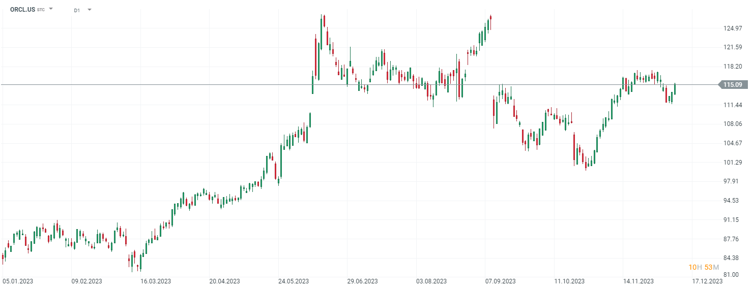 Según el equipo de análisis de XTB, las compañías cuya valoración dependen en gran medida de sus crecimientos, están condicionadas a mantener ese ritmo. En el caso de Oracle, viene de crecer un 18% en su año fiscal de 2023 para crecer estos últimos 6 meses tan solo un 7%, lo que puede provocar un ajuste del precio de las acciones y del múltiplo al que el mercado está dispuesto a comprar sus acciones.