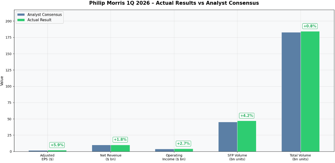 Resultados clave del primer trimestre de Philip Morris vs. consenso de analistas